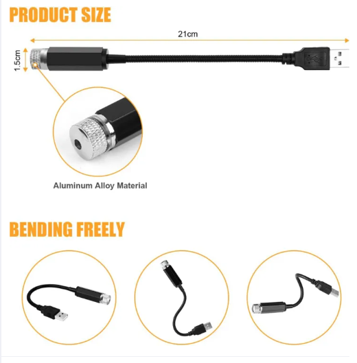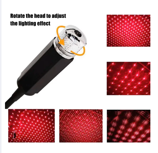 Equipped with a 360° adjustable USB connector, the flexible body can be bent to any angle you like. Easily create a romantic, starry atmosphere in your car, bedroom, or at a party. The lens is also rotatable for customized projection.