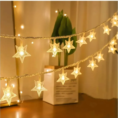 Create a cozy and magical ambiance with these golden LED star string lights. Perfect for festive decorations, bedrooms, parties, or home decor, these lights feature a warm golden glow and a steady lighting mode to set the perfect mood.