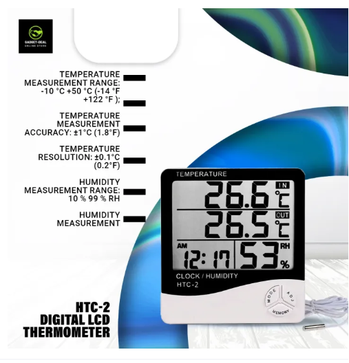 1 x HTC-2 Digital LCD Thermometer & Hygrometer