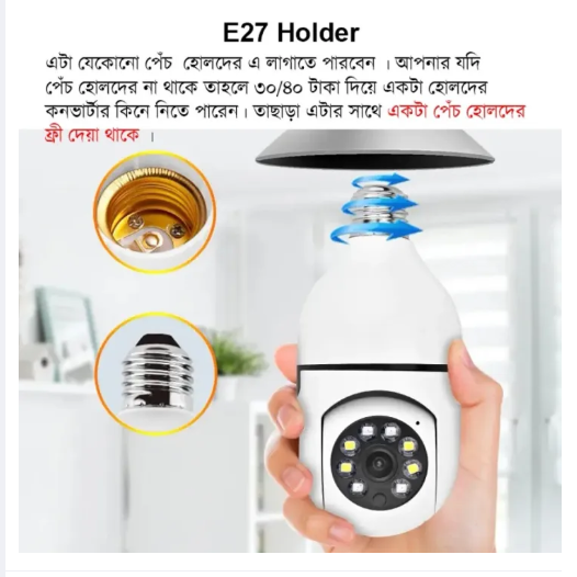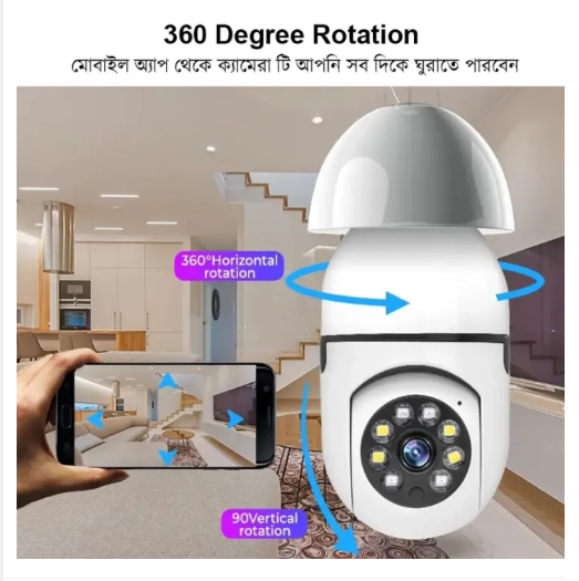 Secure your home, office, or shop with the V380 PRO Q16 Bulb IP Camera. Featuring 2MP Full HD resolution, 360-degree rotation, two-way audio, and smart motion detection, this all-in-one wireless surveillance solution is designed for easy installation and remote monitoring.