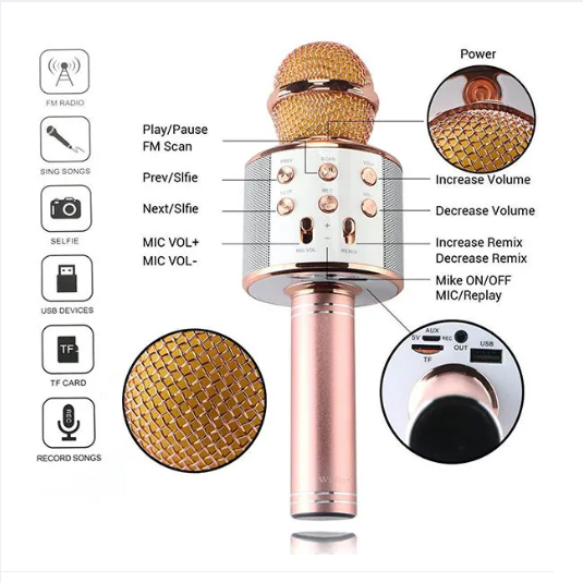 WS-858 Wireless Bluetooth Karaoke Microphone & Speaker